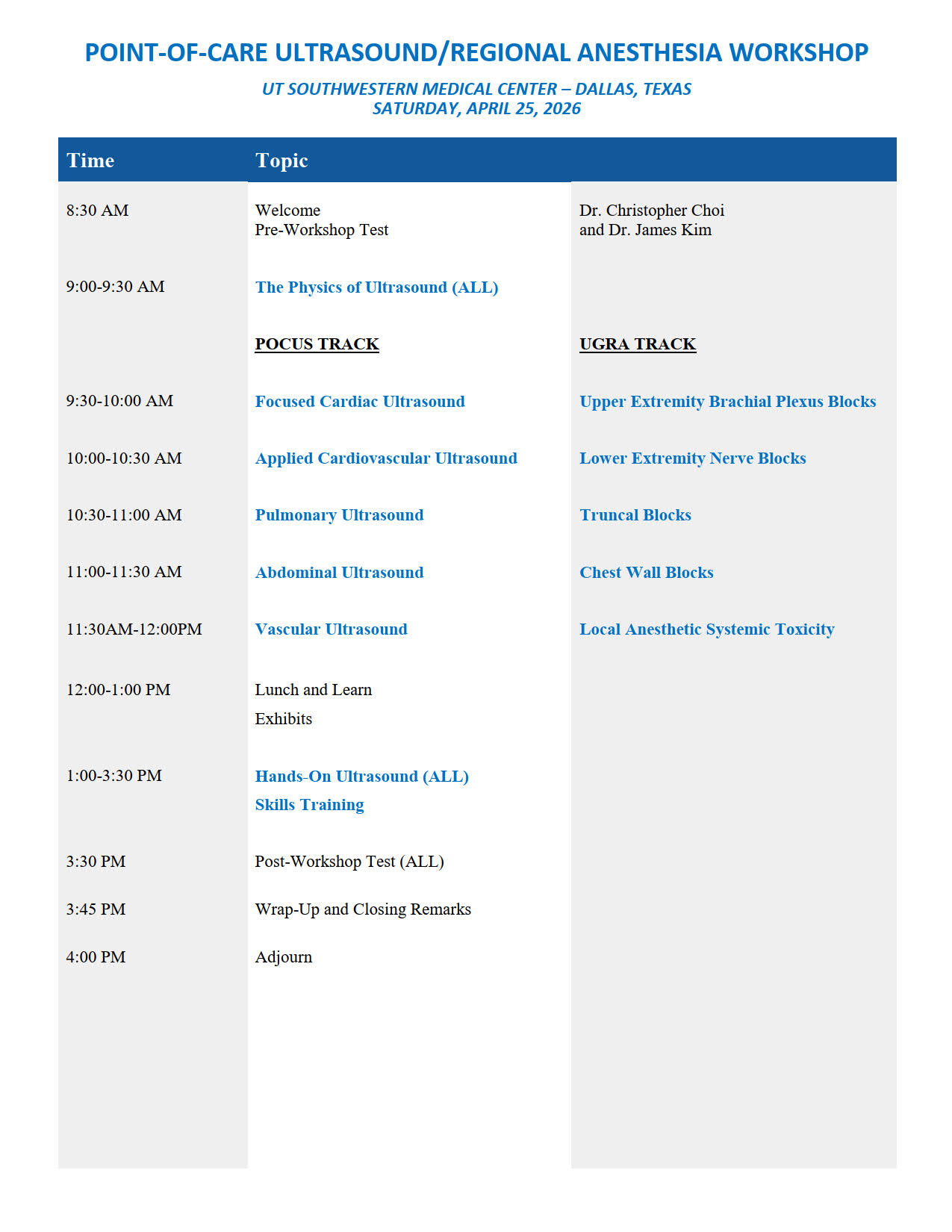 Point-of-Care Ultrasound (POCUS) / Ultrasound-Guided Regional Anesthesia (UGRA) Workshop 2026 (RP2604E)